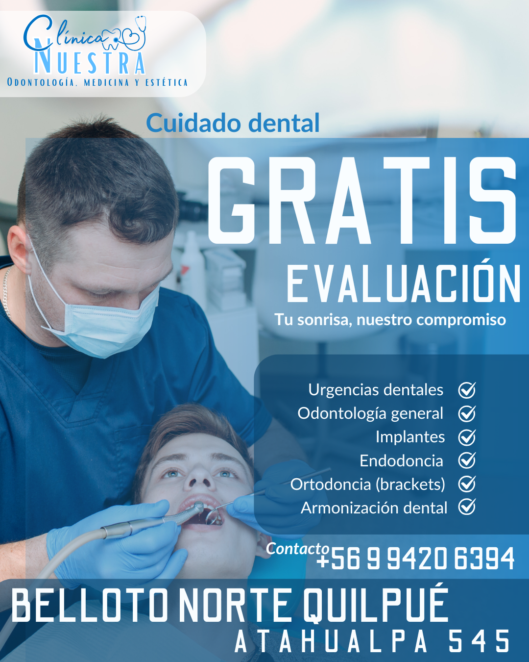 Desde sus inicios en 2012 como ClÃnica Prodental, nuestra misión ha sido brindar atención odontológica de calidad, con un enfoque cercano y humano hacia cada paciente. Con el paso del tiempo y el deseo de ofrecer un cuidado más completo, en 2025 dimos un nuevo paso y nos convertimos en ClÃnica Nuestra, un espacio dedicado al bienestar integral. incorporamos kinesiologÃa, nutrición y estética facial, siempre manteniendo el compromiso de escuchar, acompañar y entregar soluciones beneficiosas para cada persona que confÃa en nosotros.